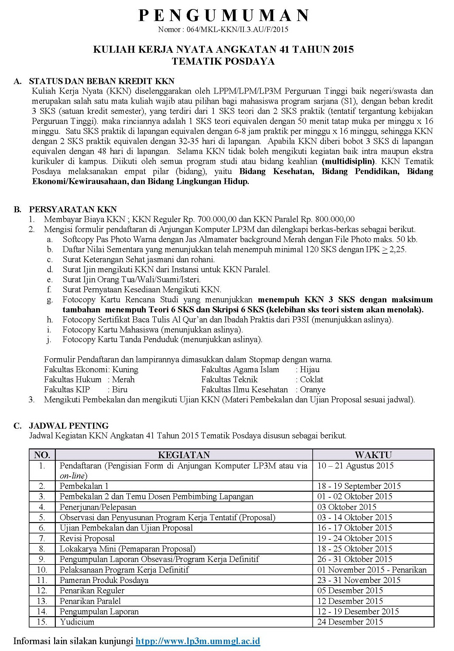 JADWAL UJIAN PROPOSAL KKN ANGKATAN 41 TAHUN 2015 TEMATIK POSDAYA