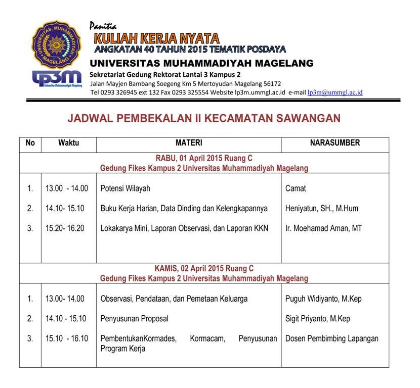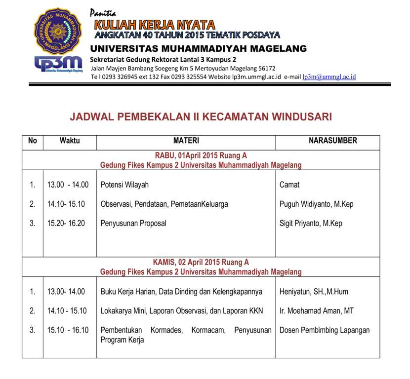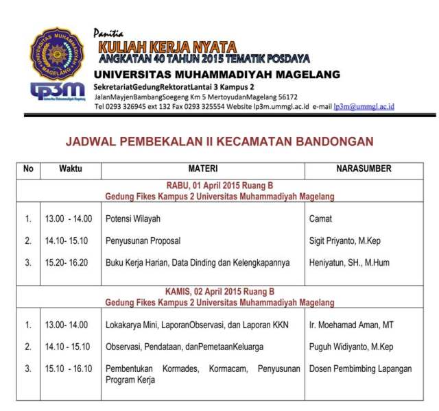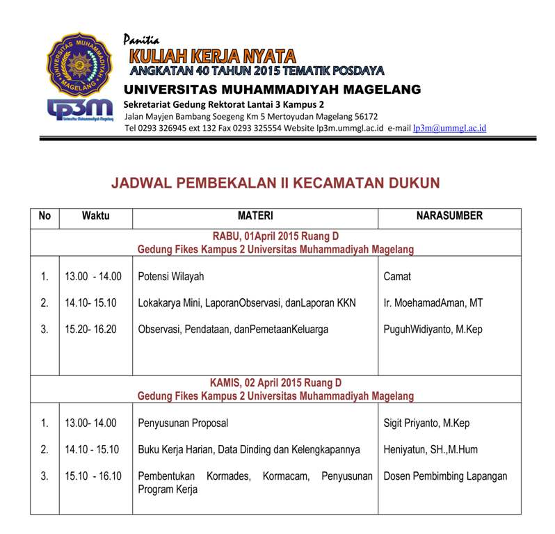 Jadwal Pembekalan II KKN 40 Tahun 2015 Tematik Posdaya